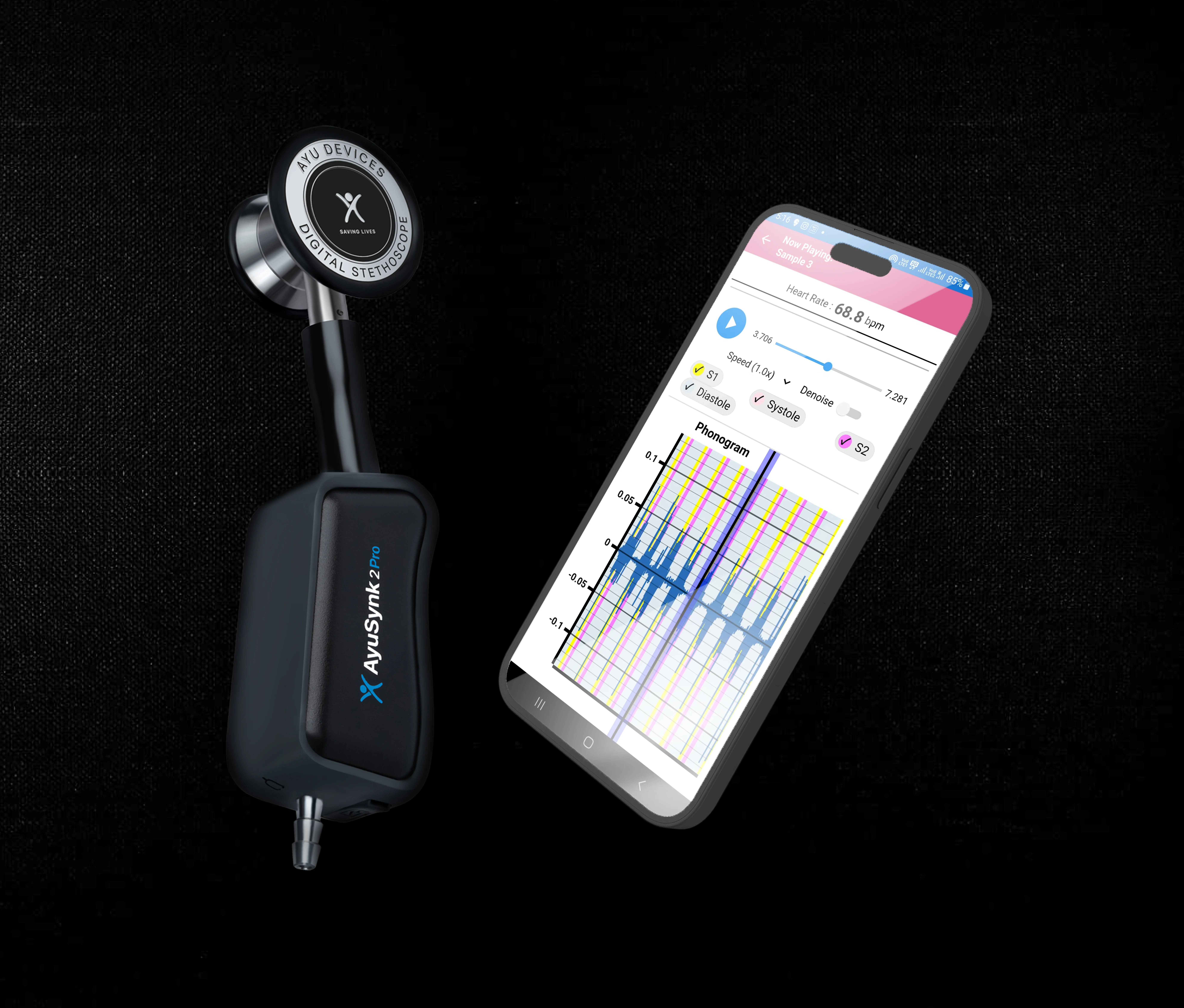- Real-time streaming, AI that sharpens heart and lung sounds, and secure sharing